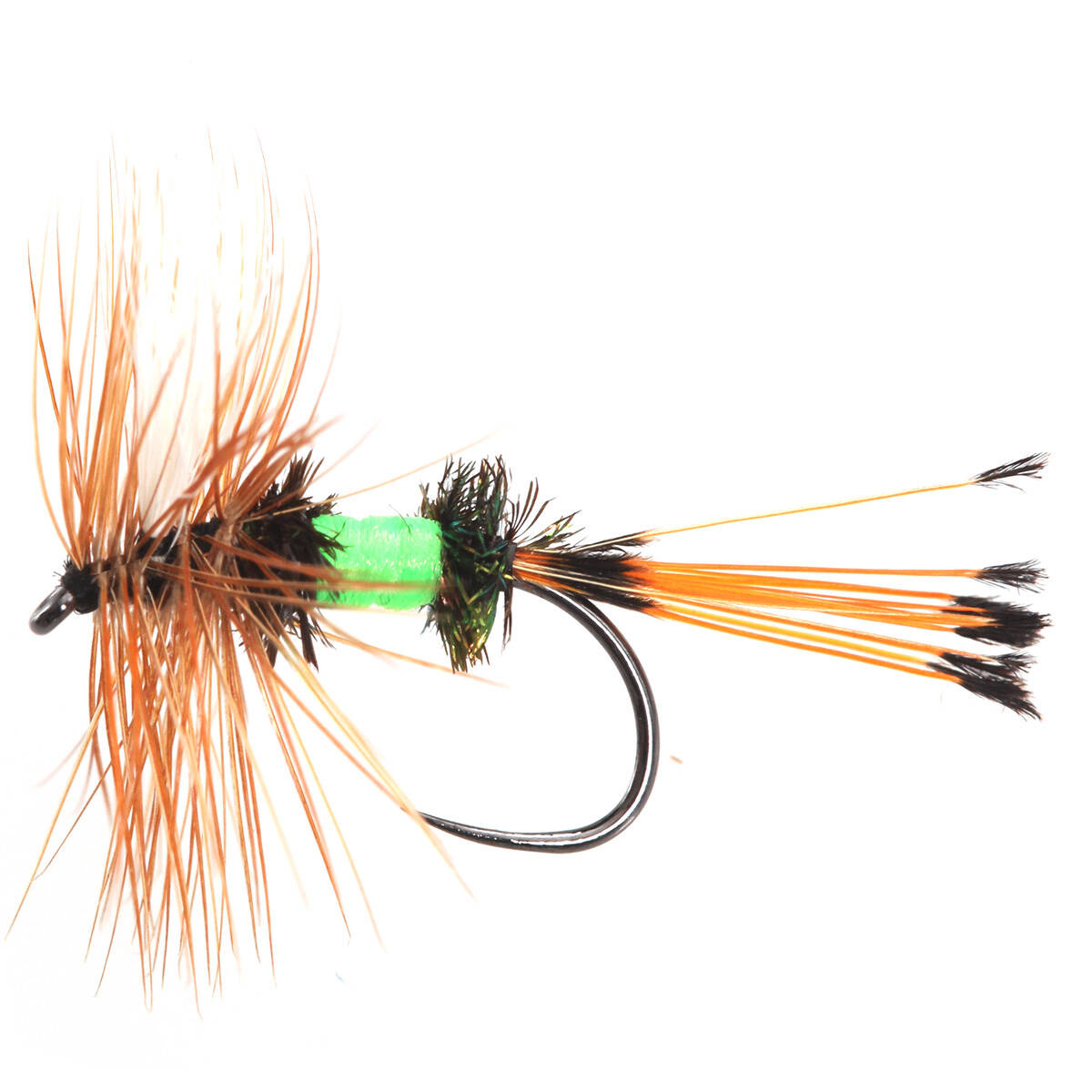 The Lime Wulff fly is a vibrant and effective pattern in the fly fishing world, known for its bright lime green coloration. This fly is designed to stand out in a variety of water conditions, making it particularly appealing to trout. The Lime Wulff features a buoyant body and a full hackle, which enable it to float well on the water's surface, mimicking the natural appearance of insects. Its striking color and effective design make it a popular choice among fly fishers for both still and moving waters. The Lime Wulff fly is not only a visually appealing pattern but also a practical and versatile tool in any fly angler's arsenal, offering high visibility and effectiveness in different fishing scenarios.