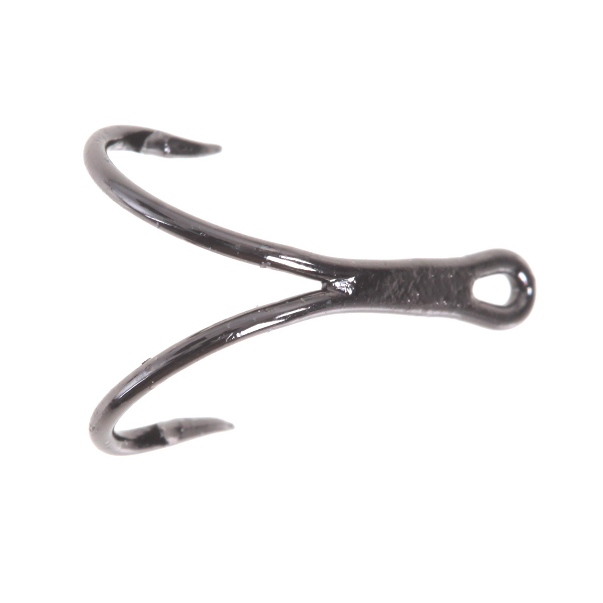 Anzuelo ancho y resistente con dobleces forjados y puntas afiladas. Caña corta