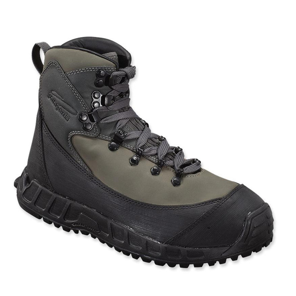 Entrar en un lecho de roca resbaladiza bajo una fuerte escorrentía primaveral requiere mucha confianza en tu habilidad para vadear y en tus botas. Podemos ayudarte con las botas. Nuestros robustos Rock Grips están fabricados para las condiciones de vadeo más extremas con un compuesto de suela de goma adherente patentado, un agresivo dibujo de estrella con múltiples zonas de agarre y tacos extraíbles. La entresuela de EVA moldeada por compresión y la combinación de plantilla y caña de polipropileno proporcionan la rigidez y la sujeción que necesitas para mantenerte vertical y reducir la fatiga. Para un confort y una protección máximos en los jardines de cantos rodados, el Rock Grip incorpora una sujeción del tobillo muy acolchada y una puntera y talonera reforzadas. La suela de goma cosida y pegada y la puntera resistente a la abrasión garantizan una durabilidad a prueba de bombas. La horma ancha permite llevar un vadeador de pie de neopreno; la suela está diseñada para sujetar las correas de las aletas. La parte superior de cuero sintético y la lengüeta acolchada de neopreno de nailon/spandex acunan los pies, se secan rápidamente y se mantienen flexibles. El resto, como se suele decir, depende de ti.