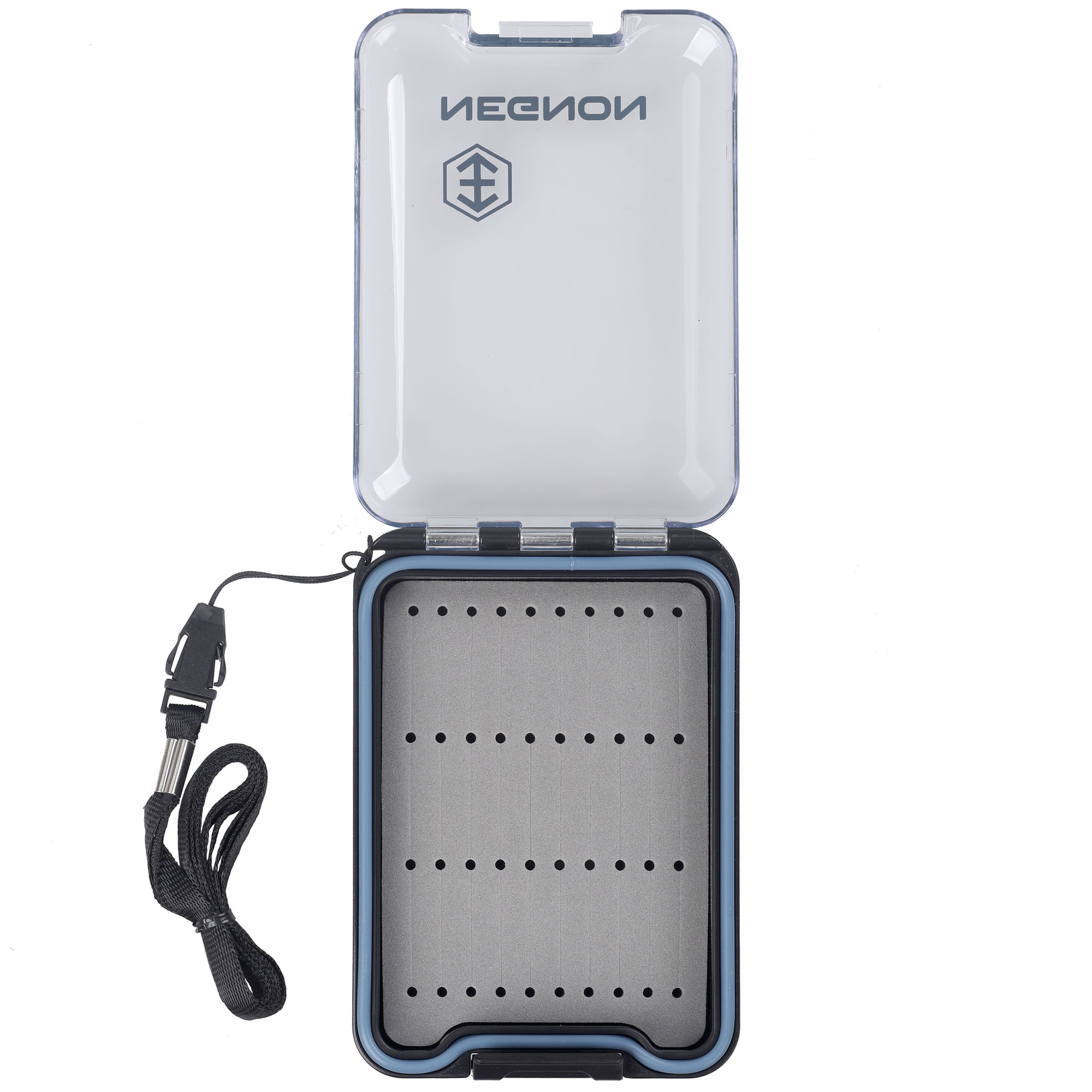 Negnon View Fly Box On Side - Pequeño es una caja pequeña, fácil de transportar y muy práctica para cualquier tipo de moscas. Equipado con una junta, garantiza una estanqueidad total cuando está cerrado. La carcasa transparente permite ver rápidamente el contenido sin necesidad de abrir la caja. Una robusta bisagra y un cierre seguro garantizan su durabilidad y un almacenamiento seguro. Cuenta con un mosquetón y un cordón que permiten sujetarla al equipo o llevarla en la muñeca, evitando que la caja se caiga accidentalmente. En el interior, hay un inserto de espuma para fijar las moscas, con recortes disponibles en varias variantes. Elija la variante que mejor se adapte a sus necesidades.