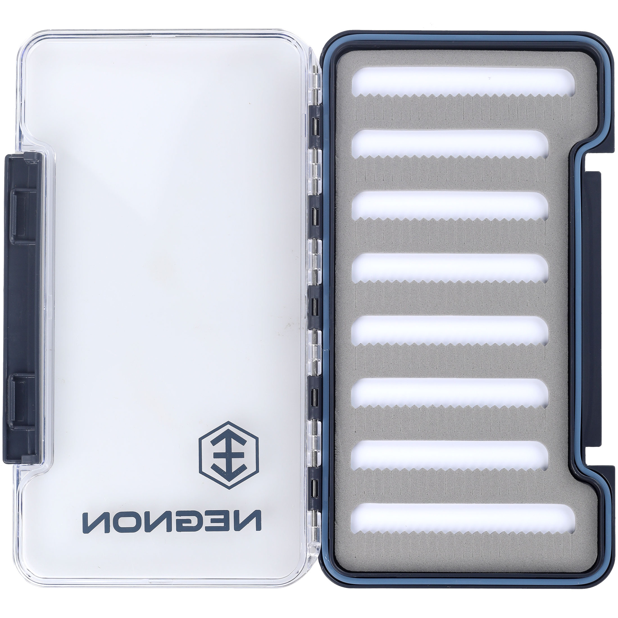 Caja para moscas Negnon View Slim - Grande es una caja elegante y funcional para ninfas y streamers. La carcasa transparente permite ver rápidamente el contenido sin necesidad de abrir la caja. Una bisagra y un cierre resistentes garantizan durabilidad y fiabilidad. Gracias a la junta, la caja es impermeable cuando está cerrada. En el interior, hay una pieza de espuma para fijar las moscas (disponible con recortes en varias variantes), compartimentos para objetos pequeños o una combinación de espuma y compartimentos. Elija la variante que mejor se adapte a sus necesidades.