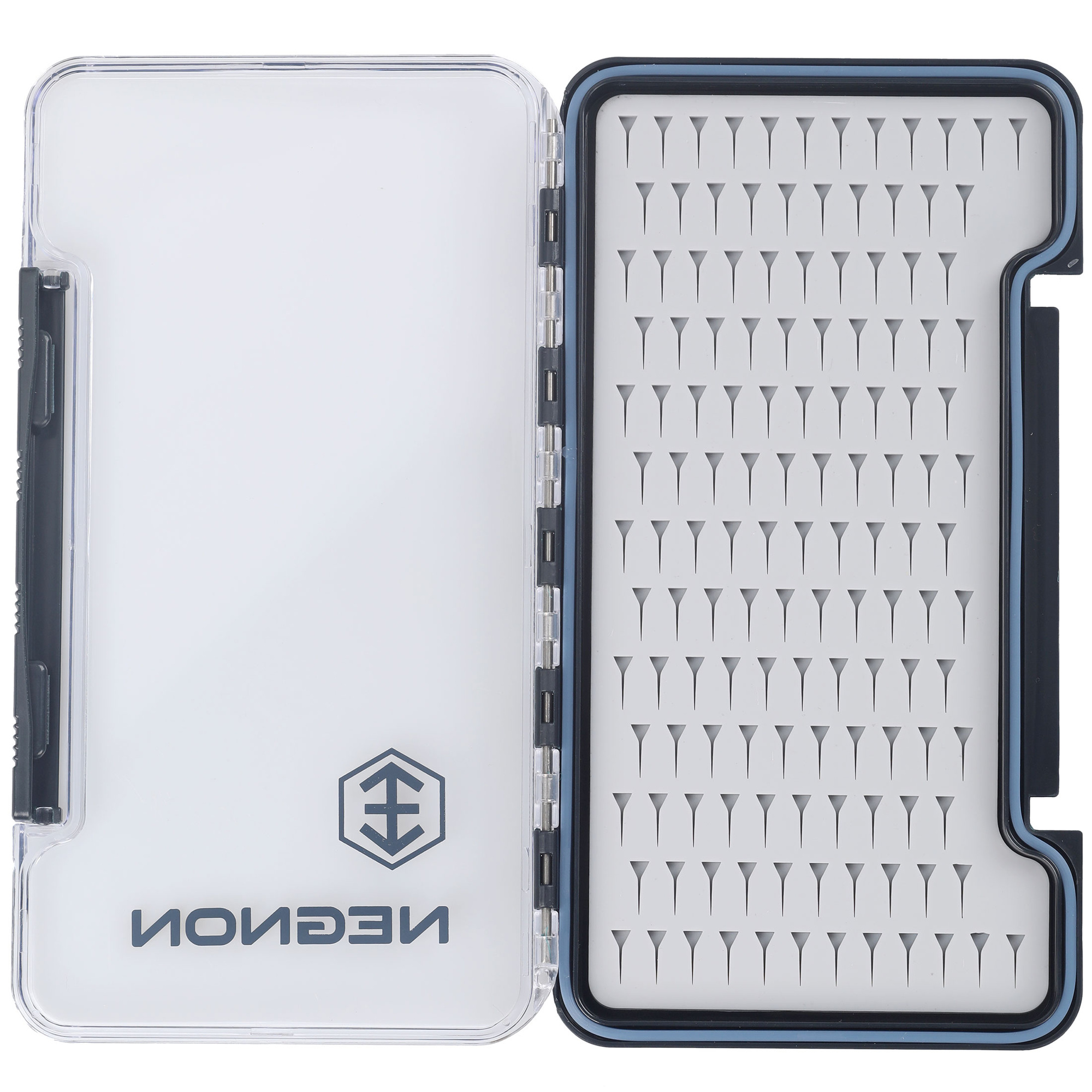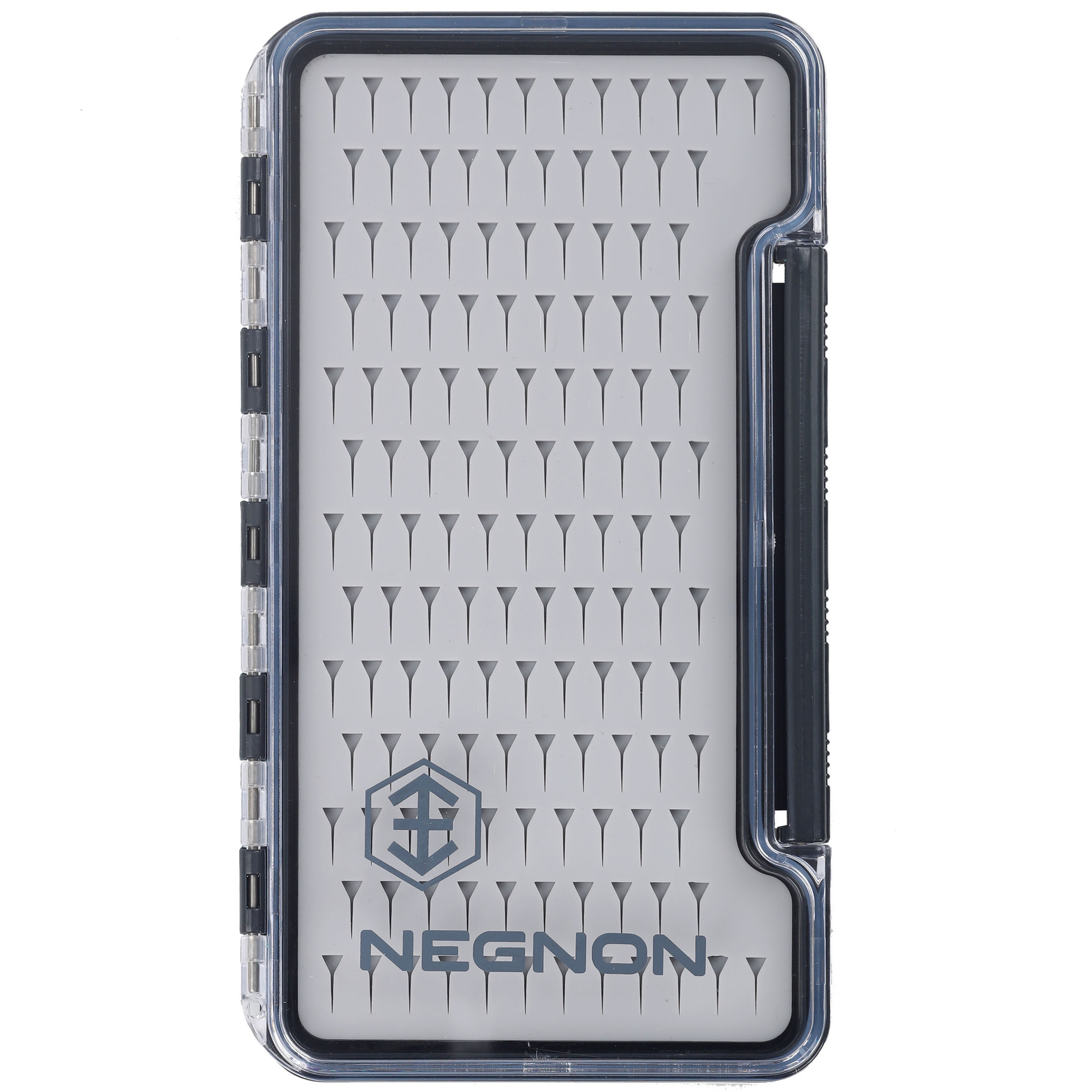 Caja para moscas Negnon View Slim SL - Grande es una caja grande para ninfas y streamers. Equipado con una junta, garantiza una estanqueidad total cuando está cerrado. La carcasa transparente permite ver rápidamente el contenido sin necesidad de abrir la caja. Una robusta bisagra y un cierre seguro garantizan su durabilidad y un almacenamiento seguro. En el interior, hay un inserto de silicona para fijar las moscas, con recortes disponibles en varias variantes. Elija la variante que mejor se adapte a sus necesidades.