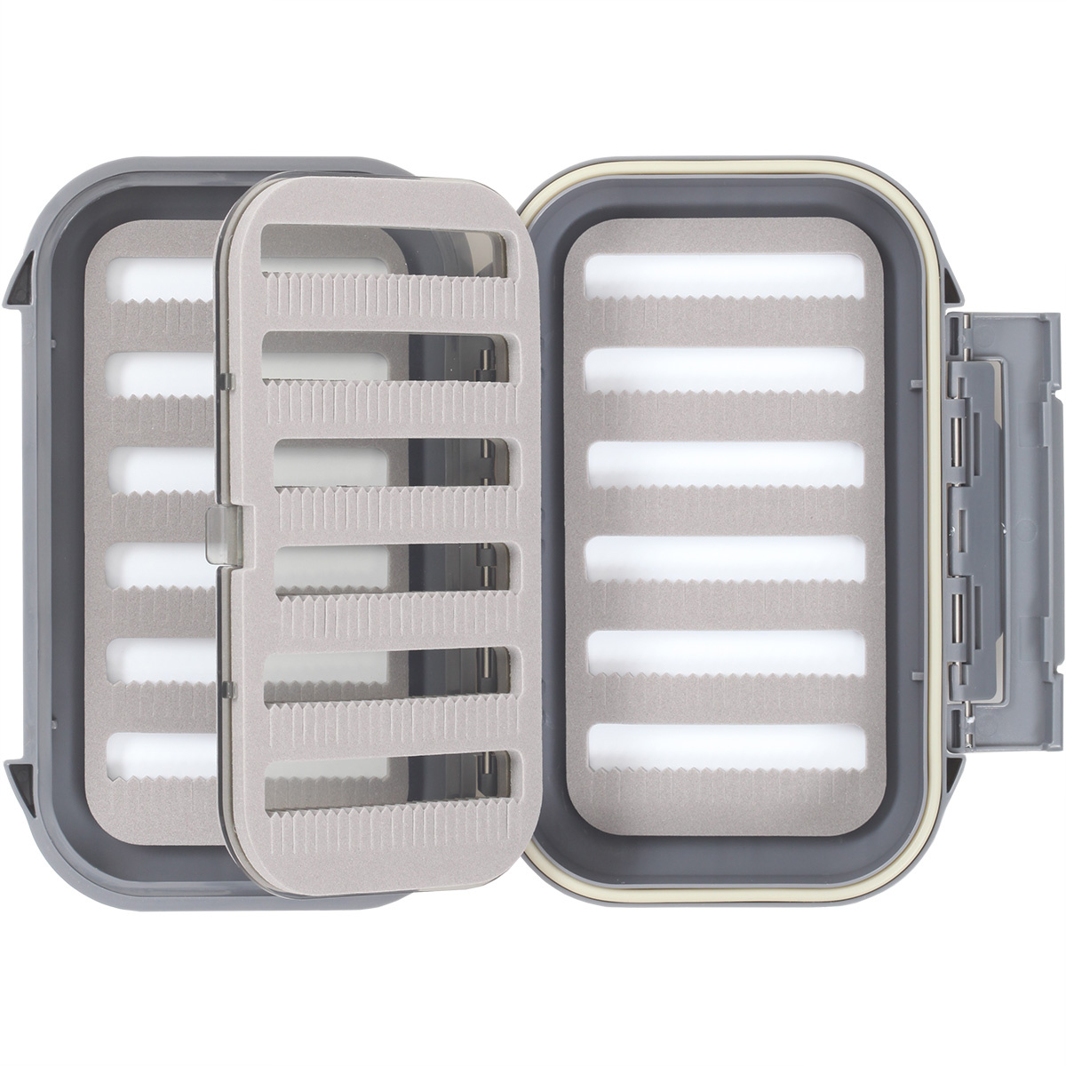 Las cajas estancas para moscas Taimen serie 3000 están fabricadas en plástico ABS de alta calidad. En el interior, hemos utilizado espuma de alta calidad con ranuras. En nuestras cajas de moscas a ambos lados de las hileras de espuma están rodeados por un marco, de modo que las moscas podría mantenerse durante mucho tiempo, incluso con un uso muy intensivo.