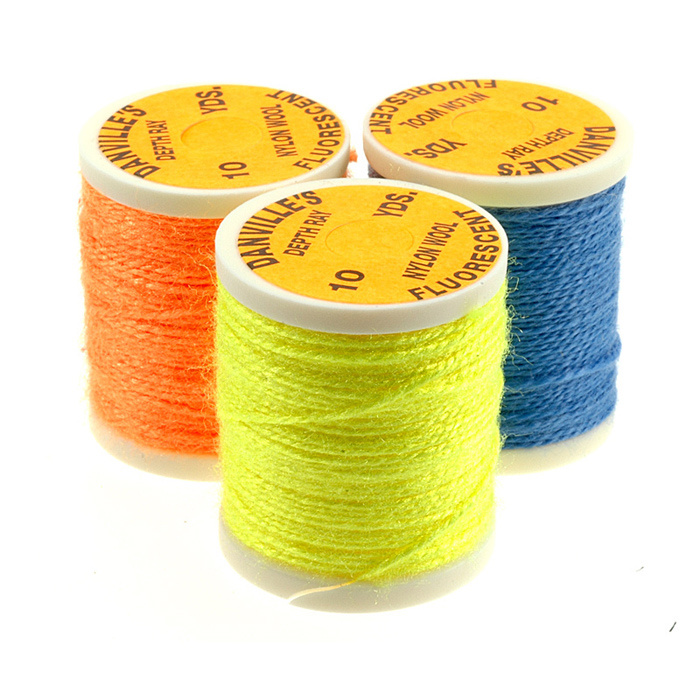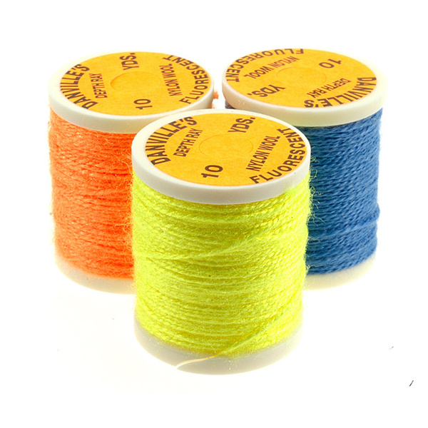 El hilo de nailon fluorescente de Danville es un hilo de una sola hebra parecido a la lana con varios usos en moscas de salmón, lubina, lucio y agua salada.