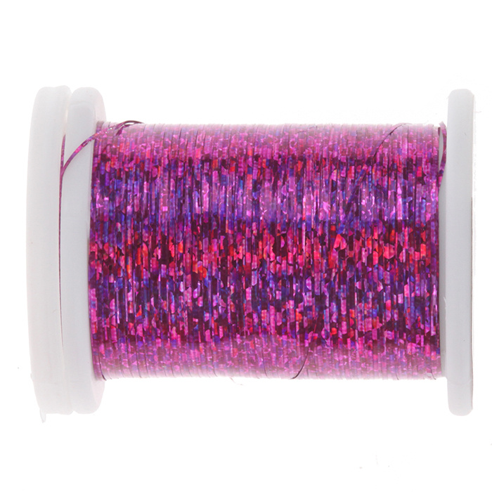 Mylar plano obtenido con efectos holográficos hechos con láser. Adecuado para atar cintas y cuerpos de banderolas, es un material esencial para dar un toque de brillo cuando se utiliza en combinación con otras fibras como Crystalflash, glossy flash u otras fibras naturales, como el marabú en las colas de las banderolas. Los tamaños 1/32" y 1/16" están especialmente indicados para grandes streamers de agua salada.