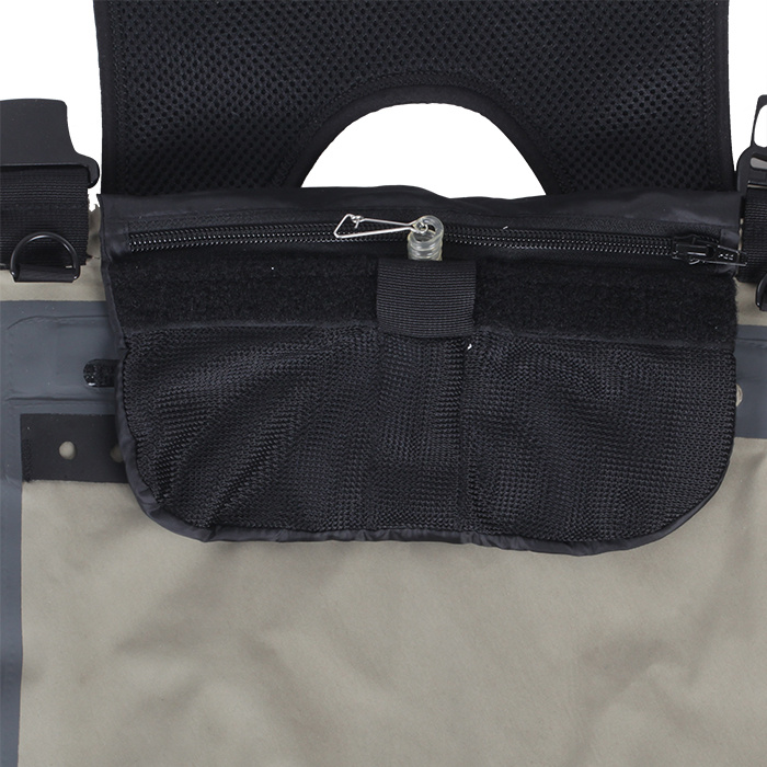 - Bolsillo exterior con cremallera impermeable para proteger el contenido de la lluvia.