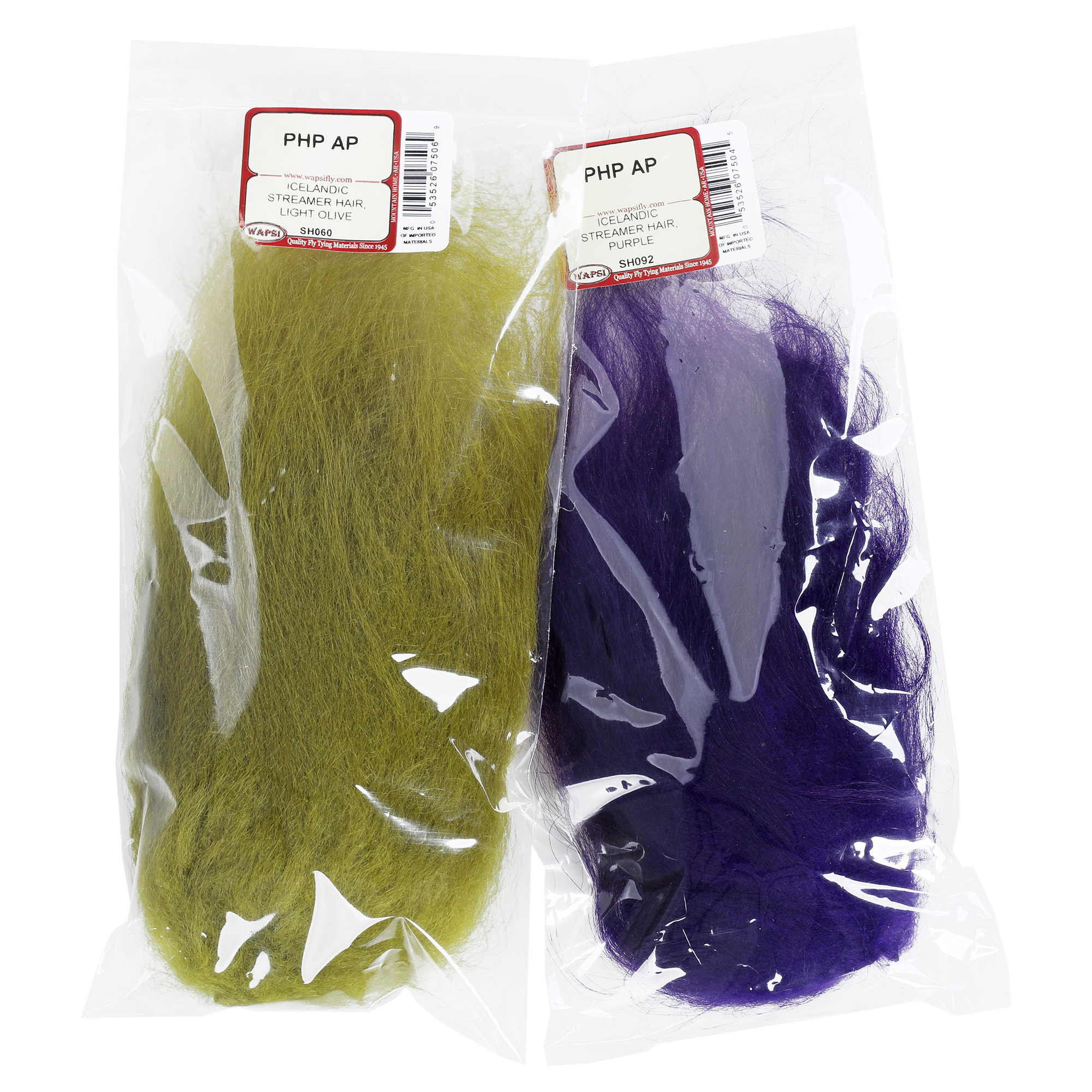 Wapsi Icelandic Streamer Hair mide entre 15 y 20 cm y se obtiene de la lana natural de oveja islandesa. La lana es gruesa con fibras de pelo largas y finas para permitir que el Icelandic Streamer Hair fluya en el agua, similar al marabú, excepto que con más fuerza para aguantar más tiempo bajo golpes bruscos y duros.